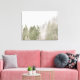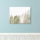 Bague en saison de vacances avec l'esthétique cosy des pins brumeux contre un ciel d'hiver blanc.