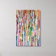 "Rainbow Rain Paint Drip" est une étonnante oeuvre d'art multicolore à goutte créée par notre artiste exclusif, représentant la pluie comme des rayures vibrantes en cascade sur une vitre. Il s'agit d'un tableau abstrait qui présente des rayures colorées de peinture percées verticalement sur une toile blanche. Le tableau se compose de nombreuses stries verticales de peinture. Ces stries varient en largeur, longueur et couleur. Les couleurs comprennent le bleu, le vert, le rouge, le jaune, le violet, l'orange et d'autres, créant un mélange vibrant. Il n'y a pas de motif ou de structure distinct; les couleurs semblent être appliquées au hasard.