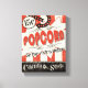 © Pela Studio / Wild Apple. Cette image montre une bobine de film et le mot Popcorn devant un arrière - plan rayé rouge et blanc.