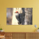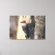 Un pic-blanc à ventre rouge rayonnant pose sur toile tendue. Idéal pour la décoration nature à la maison ou au bureau.