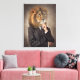 Ce design présente un portrait d'un lion en costume et en cravate.