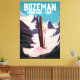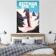 Poster de ski Bozeman Montana dans un style vintage détaillé et magnifique, avec un décor illustré de magnifiques paysages.