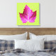 Decorate a wall with this canvas art print that features the photo image of a red autumn Maple leaf contrasted against a bright, green background. A colorful, botanical design! Select your canvas print size and other options.