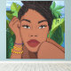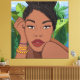 Cet incroyable morceau d'art mural présente une belle femme noire avec une tonalité rayonnante de peau rayonnante. Ses traits faciaux sont étonnamment détaillés avec un halo doré brun clair autour de sa tête. Les couleurs sont vives et créent une atmosphère vibrante. Un must qui apportera une touche particulière à la décoration des chambres.