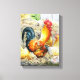 Un coq de nid encadré par un bevy de ses poules et un foin en douceur autour de lui. Les doux jaunes et gris apportent le coq coloré au centre de l'attention, là où le fier oiseau aime être. Il s'agit d'un dessin mélangé dans le pastel à l'huile et crayon coloré. Par Amanda Diehl, Paxdomino Designs