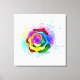 Grand rose fleuri avec pétales arc-en-ciel sur arrière - plan blanc, peint sur des éclaboussures de peinture colorée et lumineuse. 3d