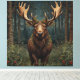 Loose yourself in the enchanting allure of this elegant bohemian moose artwork, where nature's grandeur meets timeless artistry. Set against a lush forest backdrop, this exquisite piece captures the serene beauty of a verdant woodland, rich with intricate details of flora and towering trees. The moose, standing majestically in a tranquil body of water, observes its surroundings amidst a tapestry of lush foliage, embodying the harmonious blend of botanical organic forms and nature's splendor. This piece is a perfect homage to the elegance and intricacy of Art Nouveau design, offering a timeless window into a world where nature and art intertwine.