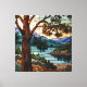 Toile Rustic mountain range landscape stain glass