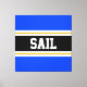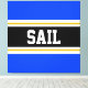 Ce design sportif coloré présente un texte SAIL en gras à l'intérieur d'une large bande horizontale centre noire avec des rayures blanches et jaunes dorées contre des rayures extérieures bleu vif. Le texte peut être personnalisé.