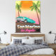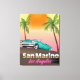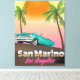 Impression d'affiche de voyage de style vintage San Marino Los Angeles. Une belle affiche de voyage d'une voiture américaine classique à l'aube au coucher du soleil.