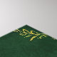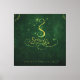 Un sceau doré brille au cœur d'un motif vert profond, entouré d'étoiles, de volutes et de diagrammes mystiques.