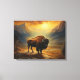 Toile Silhouette du coucher de soleil de bison de buffle