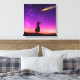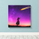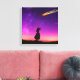 Un ciel violet vif et coloré au crépuscule avec une couverture d'étoiles recouvrant le ciel. Une silhouette d'une fille de derrière nous pouvons la voir debout sur une colline, regardant une boule de feu de météorite qui brille vers la terre et qui s'écrase. Est-ce la fin du monde ?