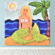 Mon tableau abstrait coloré d'une sirène sous un palmier sur toile enveloppée
