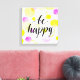 Citation inspirante de calligraphie moderne - soyez heureux - aux points d'aquarelle rose et jaune arrière - plan | Bigstock® - Tous droits réservés.