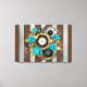 Toile Steampunk Clock and Turquoise Roses on Striped
