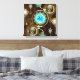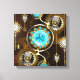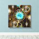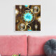 Turquoise lenses with antique watch with brass gears and golden keys on rusty, brown background. Steampunk style.