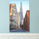 L'image capture une vue de rue à San Francisco, montrant l'emblématique bâtiment de la Transamerica Pyramid qui domine l'arrière - plan. La forme caractéristique de la pyramide domine la ligne d'horizon, encadrée par des bâtiments de part et d'autre de la rue.
