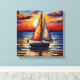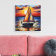 Un bateau solitaire dérive tranquillement sur l'eau, baigné par la chaleur d'un coucher de soleil à couper le souffle. Le ciel est peint de riches teintes d'orange, de rose et de violet, reflétant magnifiquement les vagues ondulantes. Cette oeuvre évoque un sentiment de tranquillité et d'aventure, parfait pour ceux qui aiment la mer et la magie du crépuscule.
