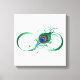 Le symbole de l'infinity with a bright, green, artistic peacock feather on a white background. Tattoo style.