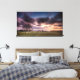 Toile Terrain de golf avec ciel de coucher de soleil rou