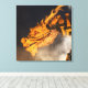 Tête de dragon aux yeux rouges dans le ciel sombre avec de la fumée ou des nuages qui s'élèvent.