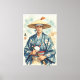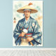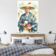 On the left side of the composition, there is an element of Japanese calligraphy. A vertical column of black characters, with a small red chop or seal below it, adds an authentic stylistic detail and may indicate the artist's signature. The overall impression is one of stoicism, dignity, and historical homage.
