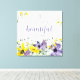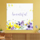 Imprimé en toile avec de jolies fleurs jaunes et violettes et verset des écritures de Ecclesiastes 3:11, "Il a rendu tout beau dans son temps." Conçu par Simply Scripture ; éléments de The Hungry Jpeg.