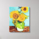 Tirage en toile d'art de Three Sunflowers (1888) de l'artiste néerlandais Vincent Van Gogh. L'oeuvre originale est une huile sur toile représentant une vie calme de tournesols jaunes brillants contre un arrière - plan turquoise. Cliquez sur Customiser pour modifier la taille de la toile ou personnaliser la conception.