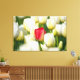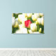Toile Tulipe rouge dans un champ de tulipes blanches