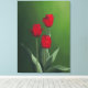 Impression en toile de tulipes rouges sur un riche arrière - plan vert. J'ai fait le tableau original en acrylique.
