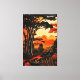 Plongez dans la magie d'un coucher de soleil tropical. Couleurs vives, silhouettes mystérieuses et promesse d'une nuit exotique. Une oeuvre qui évoque le paradis.