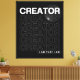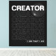 Ce dessin typographique comporte le mot Créateur, et la citation, "Je suis ce que je suis."