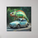 Toile Un caméléon perché sur une voiture dans un tableau
