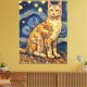 Toile Un chat dans la nuit étoilée