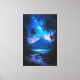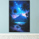 Apportez la magie d'une nuit indonésienne dans votre maison avec cette belle impression de toile. Cette oeuvre d'art présente un ruisseau serein serpentant à travers un feuillage luxuriant et éclairé par la lune vers un volcan majestueux et brillant. Au-dessus, un ciel nocturne éblouissant tourbillonne de lumière étoilée et de nébuleuses, créant une scène vraiment enchanteresse. Parfait pour ajouter une touche d'émerveillement et de tranquillité à n'importe quel espace, cet imprimé est une pièce captivante qui réunit la riche beauté tropicale de l'Indonésie et le mystère du cosmos.