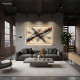 Dynamic abstract art with diagonal black and gray stripes over a cream background. Vibrant touches of orange and red plus ink splatters create movement and energy. Ideal for decorating modern spaces seeking boldness, artistic expression, and an urban, contemporary look.