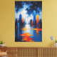 This canvas print presents a city perfectly mirrored in calm waters, creating a moment of absolute stillness.