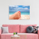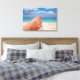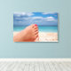 Impression en toile des pieds de femmes avec vernis à ongles rose rouge sur une plage blanche sur une île dans la mer méditerranée relaxant pendant les vacances d'été.