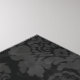 An ornate masquerade mask features intricate designs with golden feathers and swirling patterns against a dark, damask background. Its detailed craftsmanship gives an air of elegance and mystery.