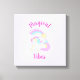 Une impression de toile avec les mots : Vibes magiques, écrit dans une police rose tendance mignonne. Conçu avec une licorne dormante avec crinière et queue bouclés de couleur pastel. Un arc-en-ciel traîne derrière une étoile filante volant au-dessus. Adorable et mignon. Arrière - plan pastel violet.