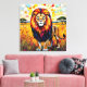 Art mural sur le thème du Lion. Une belle illustration d'un lion dans un magnifique vitrail et des motifs de carreaux cassés dans des couleurs terreuses comme le marron et le bleu.
