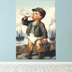 Funny WPA‑style Victorian mudlark canvas print featuring a tiny baby mudlark standing in a nineteenth‑century estuary, designed in a bold, block‑shaded vintage poster aesthetic. This humorous framed canvas blends Victorian child‑labour history with a surreal, humorous twist, creating a distinctive piece of wall décor with strong retro character humor.