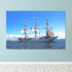 Cette impression de toile comprend un voilier arborant plusieurs drapeaux lors d'une belle journée dans des eaux calmes. Nos tirages sont imprimés avec la plus haute résolution sur papier d'archives coton-poly, pour une mesure d'impression résistante aux fondus de longue durée de 54.60" x 35.40". Cette impression permettra d'ajouter à la carte un complément parfait pour égayer n'importe quelle maison ou bureau.