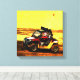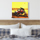 Une image peinte en gouache avec des dessins animés comme des détails montrant un conducteur de sports motorisés audacieux qui traverse un circuit de terre dans un côté par un véhicule tout terrain. C'est un moteur puissant et des pneus à taraudage vif qui tirent vraiment le quatre roues motrices clignotant à travers la piste. Des teintes chaudes de jaune et de marron pour l'arrière - plan, ainsi qu'une machine rouge et blanche et des équipements de équitation font de ce chef-d'oeuvre le choix parfait pour toute chambre ou mancave d'un amateur de sports extrêmes en plein air.