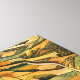 Vue aérienne à couper le souffle sur un vaste paysage agricole. La scène est dominée par une mosaïque de champs dans différentes nuances de brun, d'or et de vert, créant un motif géométrique fascinant. Les champs sont méticuleusement divisés par des rangées d'arbres et des routes sinueuses, ce qui ajoute à l'attrait visuel général.