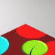 Whimsical and Quirky Tree Art, "The Magical Forrest", artiste utilise des couleurs vives solides en rouge, jaune. bleu et vert citron pour créer cette pièce unique.