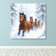 A herd of wild horses gallop through a breathtaking, snowy forest, their powerful movements creating a stunning contrast against the serene, snow-covered trees that envelop the scene in majestic beauty
