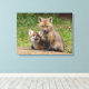Deux jeunes renards roux partagent un moment juste à l'extérieur de leur tanière.