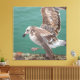 Une mouette aux plumes brunes et blanches se dresse sur une jetée patinée, ses ailes s'étalant sur une large largeur comme si elle se préparait à prendre l'avion. La tête de l'oiseau est tournée vers le côté, son bec jaune légèrement ouvert. L'arrière - plan dispose d'un océan calme et de couleur turquoise, créant une atmosphère sereine et paisible.